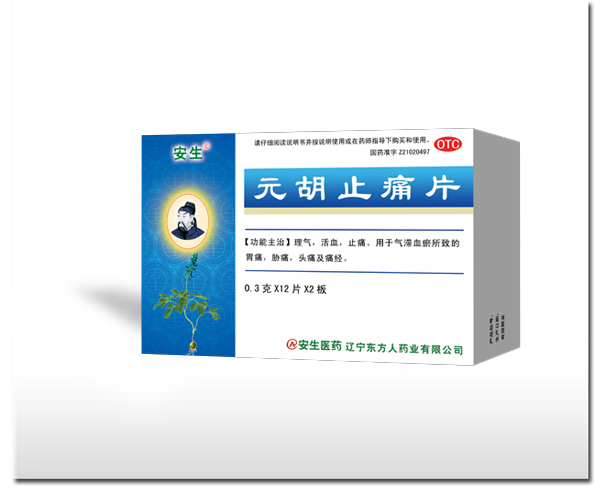 【药品名称】 通用名称:元胡止痛片 汉语拼音:Yuanhu Zhitong Pian 【成 份】醋延胡索、白芷。辅料为淀粉、蔗糖、滑石粉。 【性 状】本品为糖衣片,除去包衣后,显棕黄色至棕褐色;气香,味苦。 【功能主治】理气,活血,止痛。用于气滞血瘀所致的胃痛,胁痛,头痛及痛经。 【规 格】片芯重0.25克 【用法用量】口服。一次4~6片,一日3次,或遵医嘱。 【不良反应】尚不明确 【禁 忌】尚不明确 【注意事项】 饮食宜清淡,忌酒及辛辣、生冷、油腻食物。 忌愤怒、忧郁,保持心情舒畅。 有高血压、心脏病、肝病、糖尿病、肾病等慢性病严重者应在医师指导下服用。 儿童、孕妇、哺乳期妇女、年老体弱者应在医师指导下服用。 疼痛严重者应及时去医院就诊。 服药3天症状无缓解,应去医院就诊。 对本品过敏者禁用,过敏体质者慎用。 本品性状发生改变时禁止使用。 儿童必须在成人监护下使用。 请将本品放在儿童不能接触的地方。 如正在使用其他药品,使用本品前请咨询医师或药师。 【药物相互作用】如与其他药物同时使用可能会发生药物相互作用,详情请咨询医师或药师。 【贮 藏】密封。 【包 装】 【有效期】36个月 【执行标准】《中国药典》2020版一部 【批准文号】国药准字Z21020497 【说明书修订日期】2020年12月30日 【药品上市许可持有人】辽宁东方人药业有限公司 【药品上市许可持有人地址】辽宁省本溪经济开发区医药园区 【生产企业】 企业名称:珠海安生医药有限公司 辽宁东方人药业有限公司 生产地址:辽宁省本溪经济开发区医药园区 邮政编码:117004 电话号码:024-45859555 传真号码:024-45859556