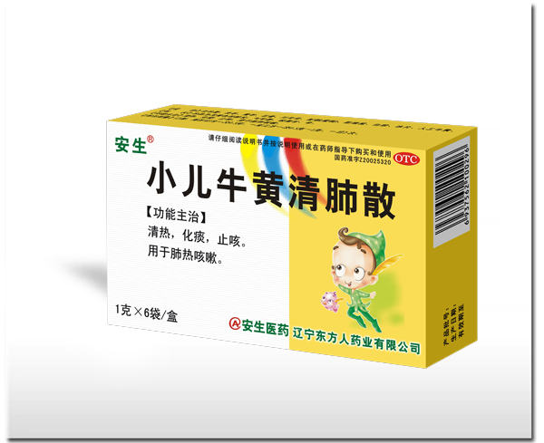 【药品名称】 通用名称:小儿牛黄清肺散 汉语拼音:Xiao′er Niuhuang Qingfei San 【成 份】法半夏、茯苓、黄芩、石膏、川贝母、百部(蜜制)、胆南星、白前、冰片、人工牛黄。 【性 状】本品为浅黄色的粉末;气芳香,味微甘、辛。 【功能主治】清热,化痰,止咳。用于肺热咳嗽。 【规 格】每袋装1克 【用法用量】口服,周岁以内一次0.5克,一至三岁一次0.5克~1克,一日2 次。 【不良反应】尚不明确 【禁 忌】尚不明确 【注意事项】 忌食辛辣、生冷、油腻食物。 婴儿应在医师指导下服用。 脾虚易腹泻者慎服。 风寒袭肺咳嗽不适用,症见发热恶寒、鼻流清涕、咳嗽痰白等。 出现高热,或喘促气急者,应到医院就诊。 服药3天症状无缓解,应去医院就诊。 对本品过敏者禁用,过敏体质者慎用。 本品性状发生改变时禁止使用。 儿童必须在成人监护下使用。 请将本品放在儿童不能接触的地方。 如正在使用其他药品,使用本品前请咨询医师或药师。 药物相互作用】如与其他药物同时使用可能会发生药物相互作用,详情请咨询医师或药师。 【贮 藏】密封。 【包 装】药用复合膜:每盒装6袋。 【有 效 期】18个月 【执行标准】国家药品监督管理局标准,编号:WS-10260-(ZD-0260)-2002-2012Z 【批准文号】国药准字Z20025320 【说明书修订日期】2020年12月01日 【药品上市许可持有人】辽宁东方人药业有限公司 【药品上市许可持有人地址】辽宁省本溪经济开发区医药园区 【生产企业】 企业名称:辽宁东方人药业有限公司 生产地址:辽宁省本溪经济开发区医药园区 邮政编码:117004 电话号码:024-45859555 传真号码:024-45859556